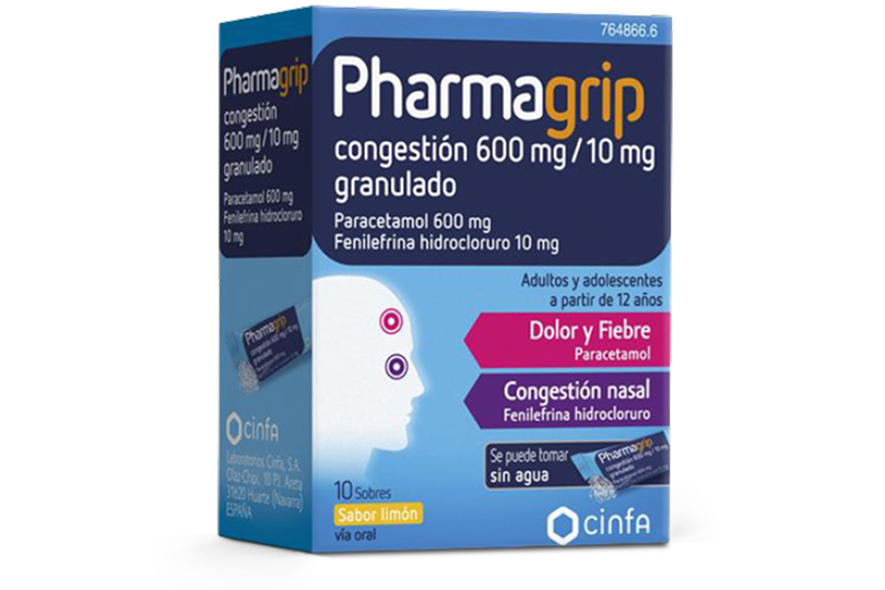 Combate eficazmente la fiebre, la congestión y la secreción nasal en adultos y adolescentes a partir de 14 años. Con 650 mg de paracetamol y sin azúcar.